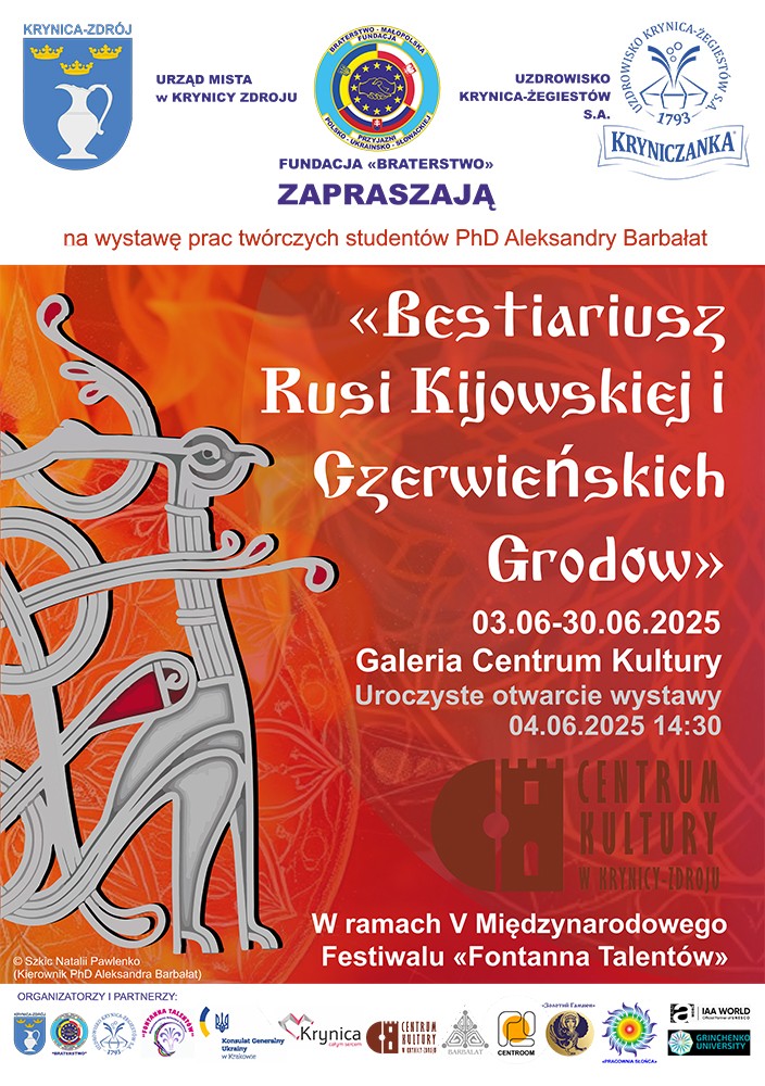 Centrum Kultury w Krynicy-Zdroju, Galeria Sztuki "SIEDLISKO" oraz Fundacja "Braterstwo" serdecznie zapraszają na wystawę prac twórczych studentów doktor Aleksandry Barbałat, która zorganizowana jest w ramach Międzynarodowego Dziecięcego Festiwalu FONTANNA TALENTÓW.